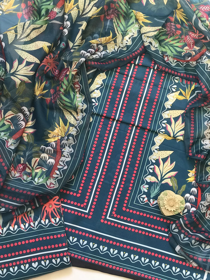 Digital Printed Poly Swiss Lawn Dress With Digital Printed Silk Dupatta (unstitch)